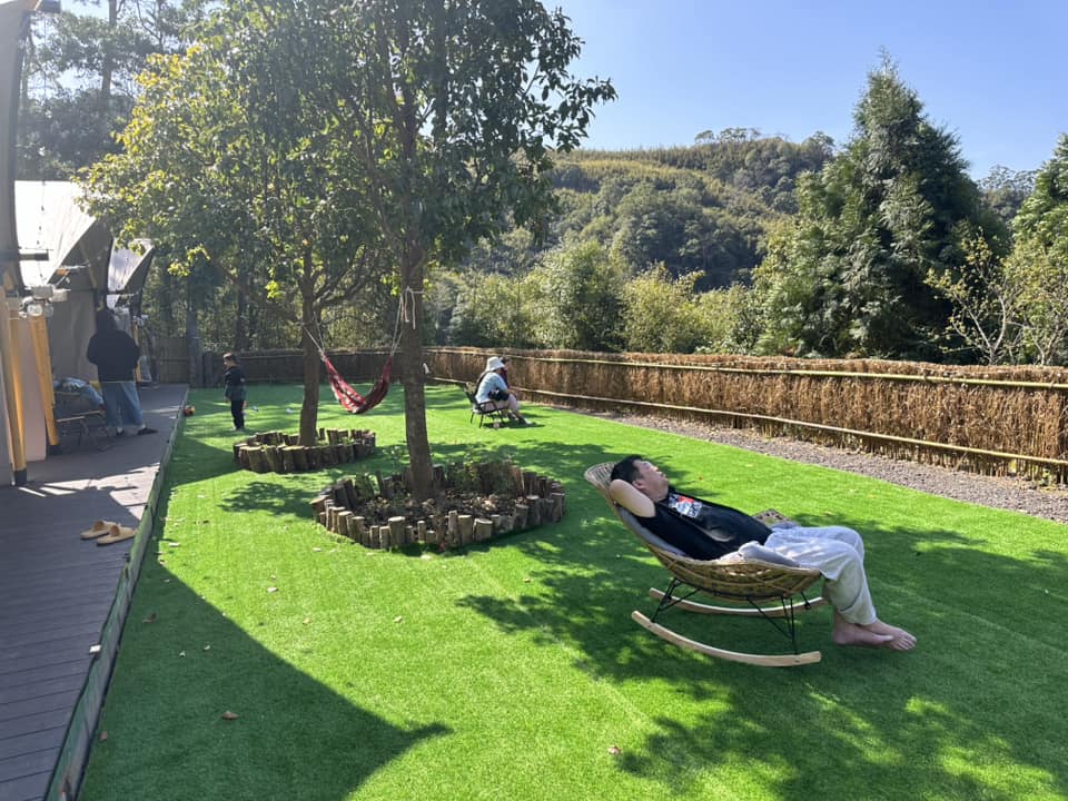 坐在綠草如茵的露營地,一對來自歐洲的夫婦享受著遠離城市喧囂的寧靜。他們自助旅行,駕車穿越千里來到苗栗山上的這片美麗天地