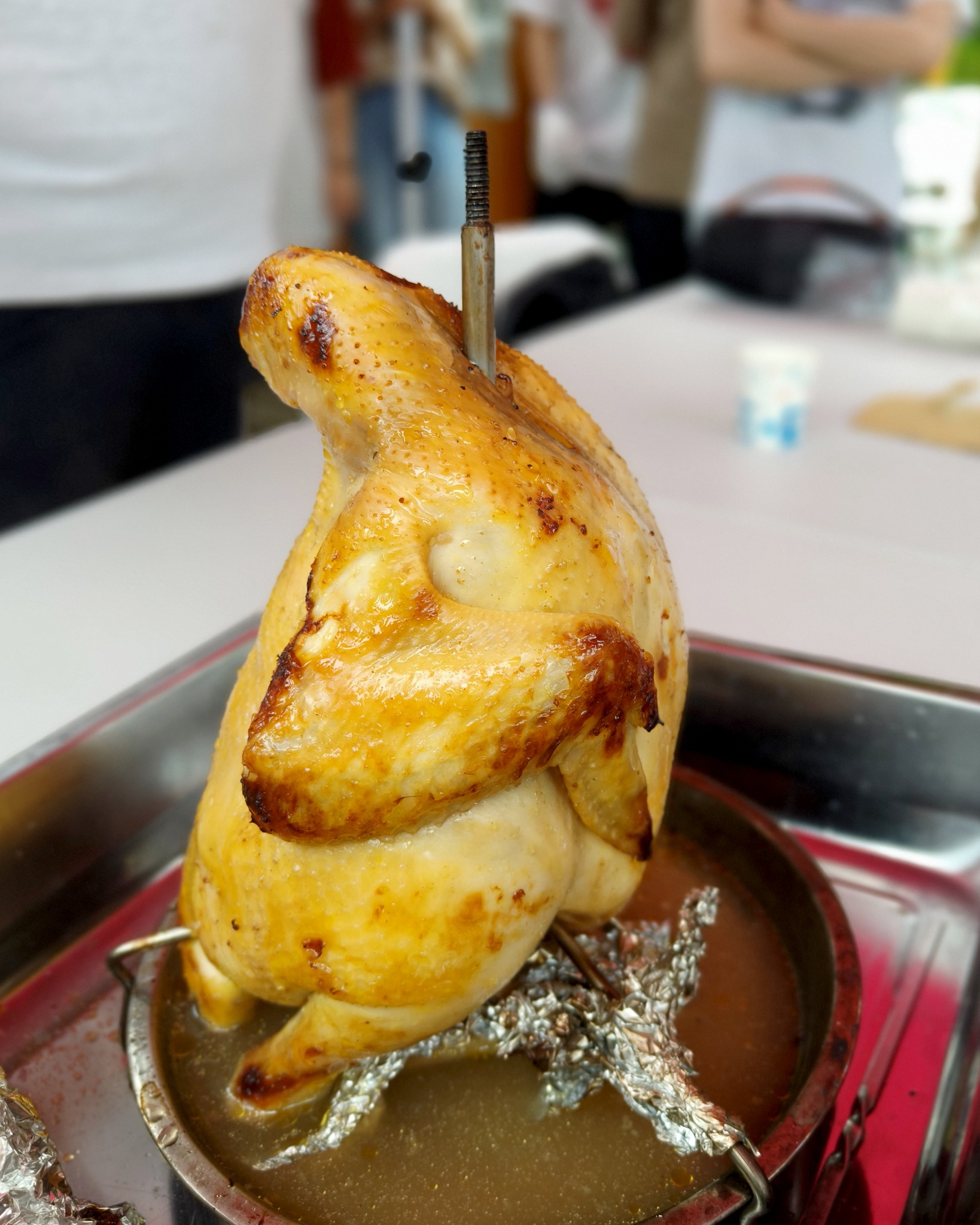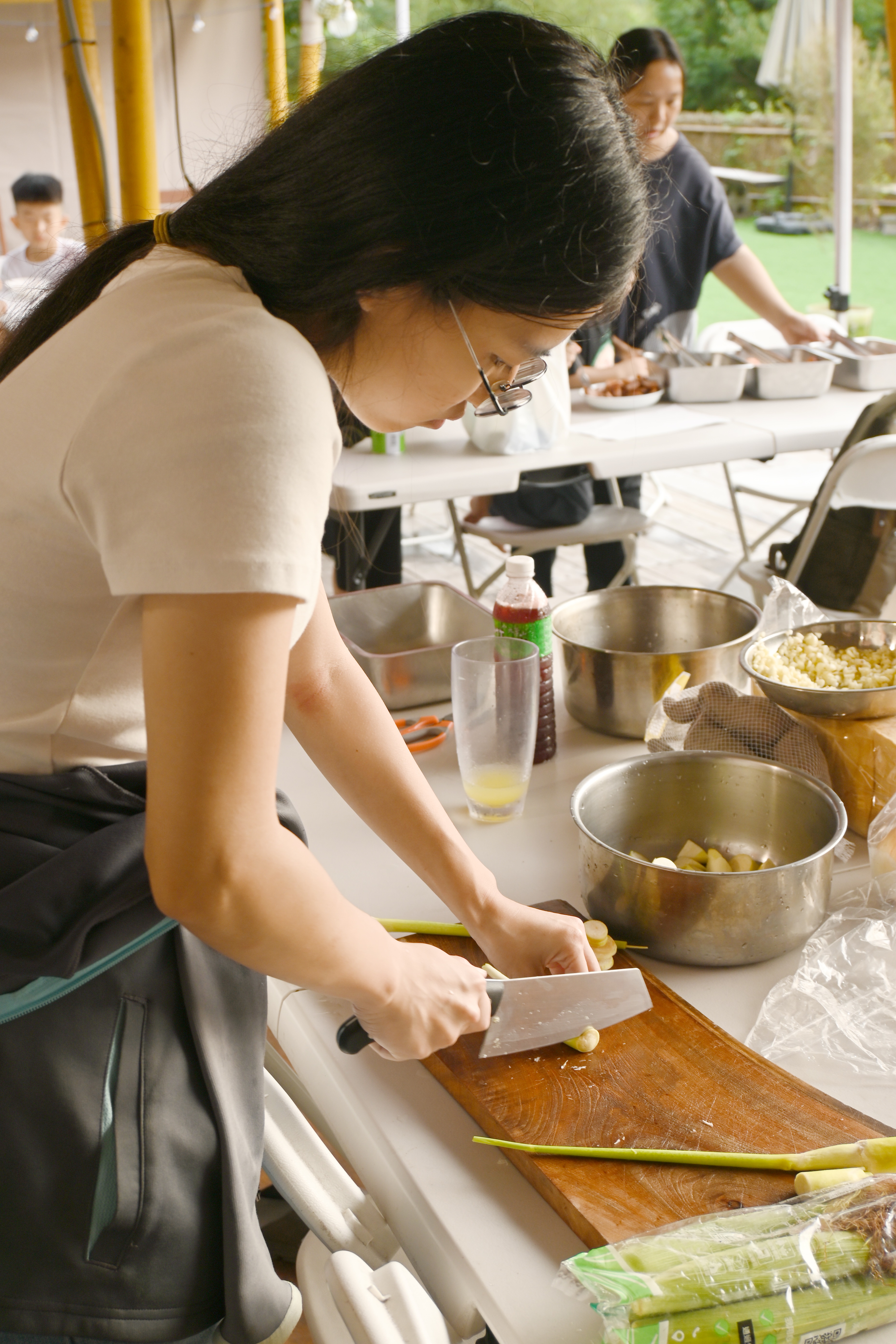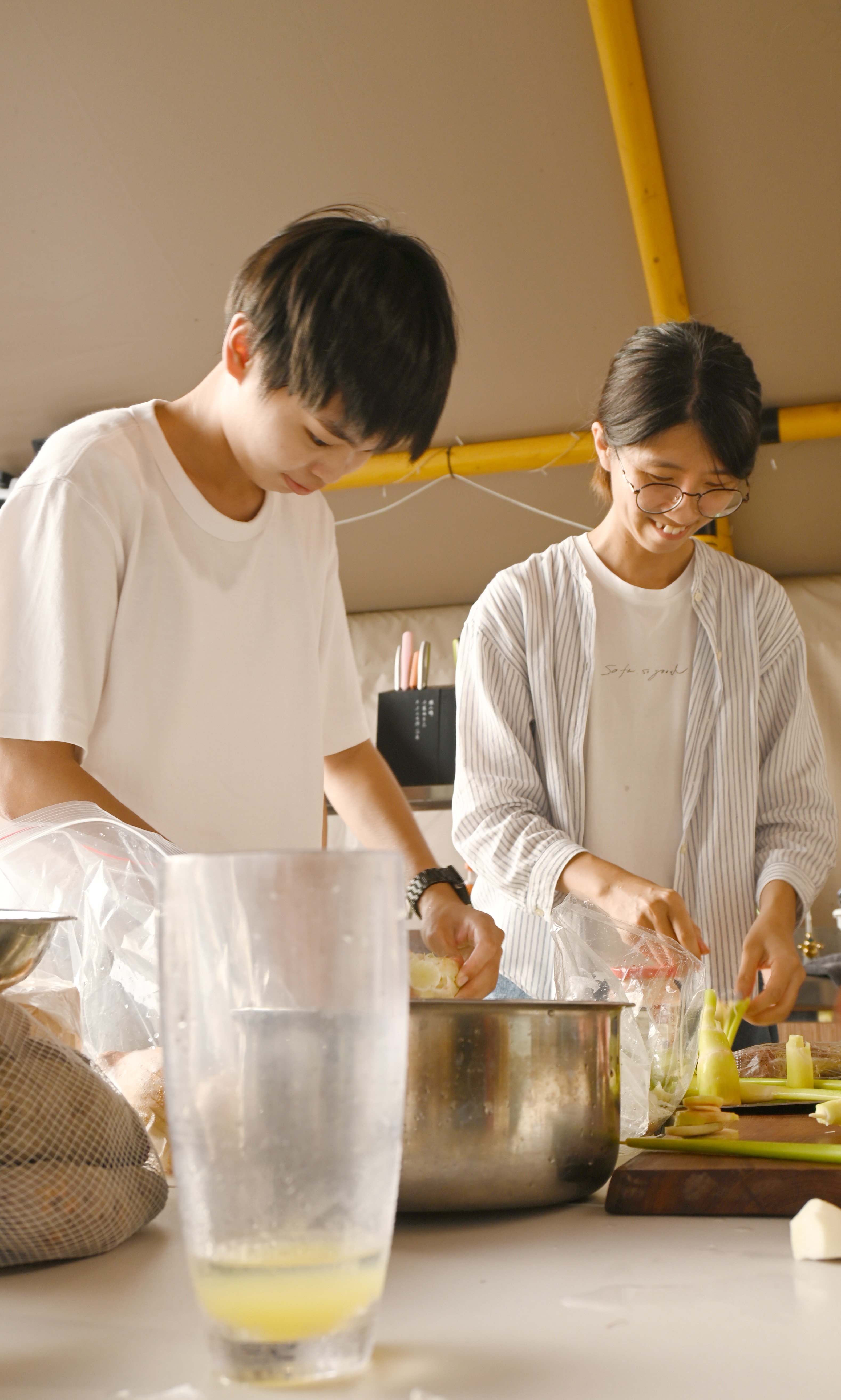 體驗客家菜烹飪。營區負責人凱瀚準備了多樣食材,特別的是使用牛樟木作燃材的香草甕仔雞。同學們分工採集香草與牛樟木,並用餘火烤地瓜。透過與凱瀚的交流,大家了解到經營露營區的挑戰。雖然活動結束時飄起細雨,但同學們在雨中享用共同料理的美食,這次體驗活動充滿樂趣與滿足感