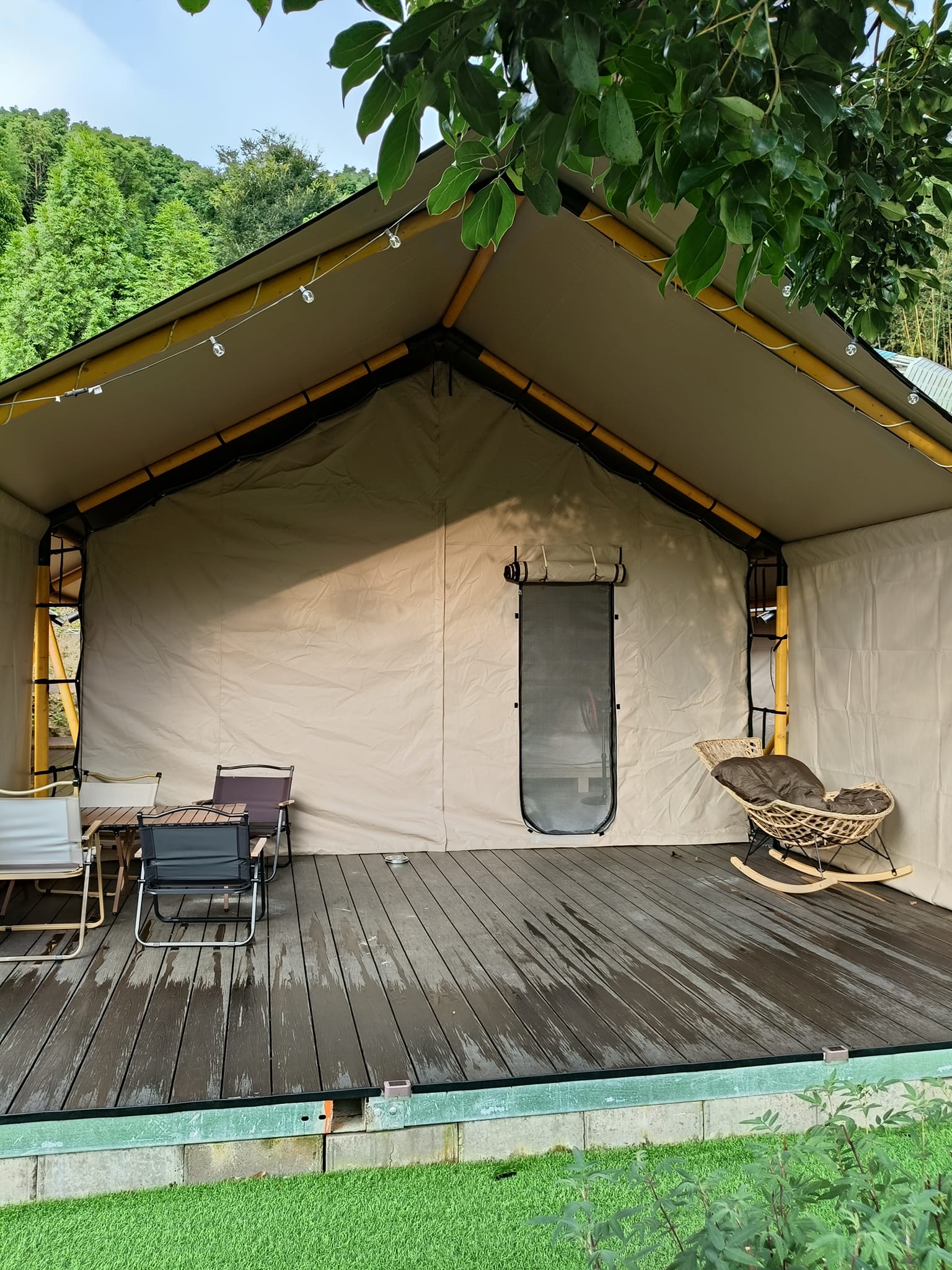 露營地環境清幽,隱私性極佳,讓人遠離都市的喧囂,營地設施豐富,帳篷內還配有冷氣,即使在炎熱的天氣裡也能感到涼爽。附近有自然步道,非常適合清晨散步放鬆。園主友善且服務貼心